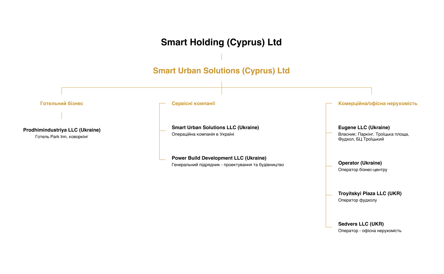 Smart Urban Solutions Ltd (Кіпр) — керуюча компанія групи Smart Holding у сфері комерційної нерухомості. Її діяльність охоплює стратегічне управління інвестиційними проєктами, розвиток бізнесу та експертизу в операційному управлінні.